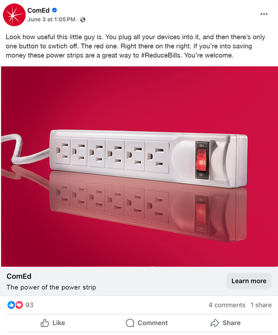 OLA. ComEd is Chicagoland's electric utility. Most of their marketing budgets goes to promoting ways consumers can consume less.
